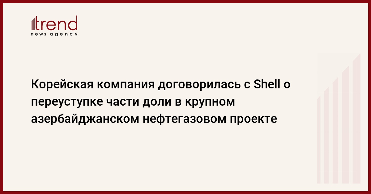Азербайджан, Баку /корр. Trend С.Алиев, В.Шарифов/ Корейская национальная нефтяная корпорация (KNOC) договорилась с Shell о получении 20 процентов из 25-процентной доли участия британо-голландской компании в проекте разведки и разработке перспективной структуры "Инам" в азербайджанском секторе Каспия, сообщил в среду источник, близкий к проекту.