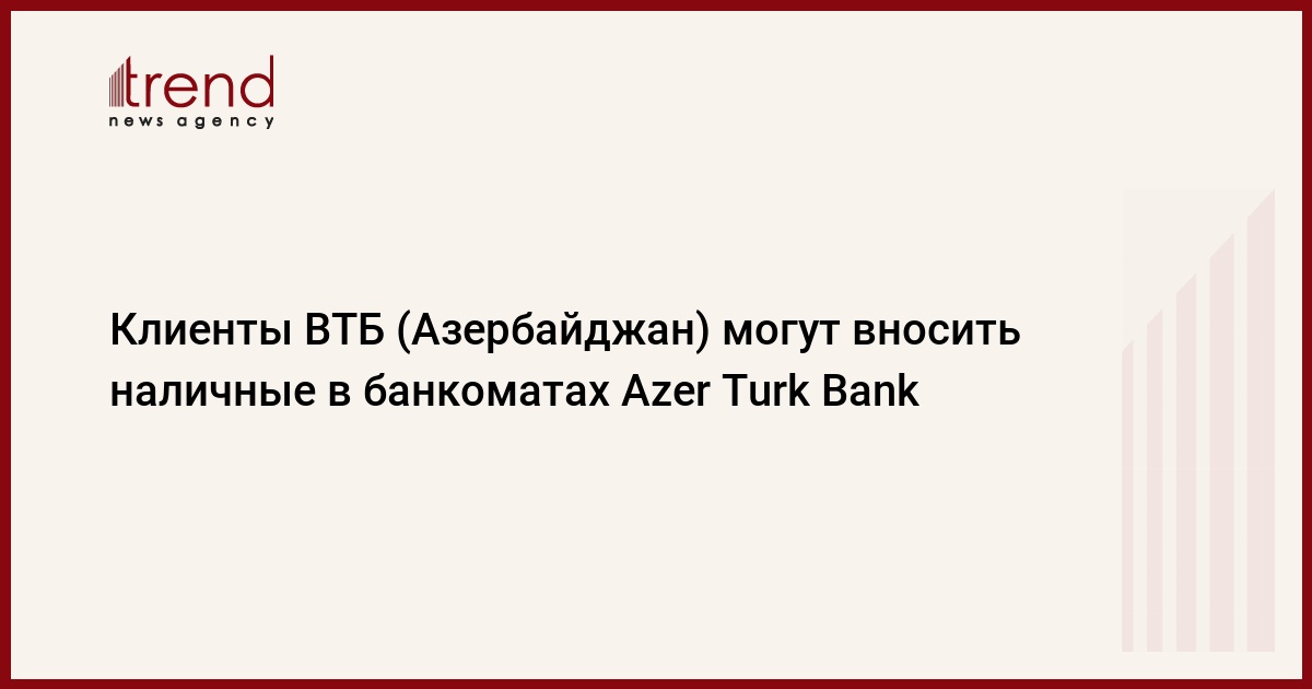БАКУ /Trend/ - ВТБ (Азербайджан) предоставляет своим клиентам возможность вносить наличные средства через банкоматы партнерской сети Azer Turk Bank без дополнительной комиссии, сообщает банк в среду.