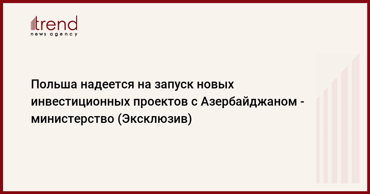 БАКУ /Trend/ - Польша надеется на запуск новых инвестиционных проектов с Азербайджаном, сказали Trend в министерстве предпринимательства и технологий Польши.
