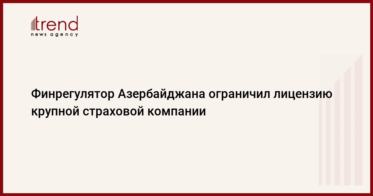 БАКУ /Trend/ - Палата надзора над финансовыми рынками Азербайджана ограничила лицензию Государственной страховой коммерческой компании (AzerInsurance) на оказание услуг по обязательному страхованию автогражданской ответственности (ОСАГО), сообщает в пятницу Trend со ссылкой на финансового регулятора.