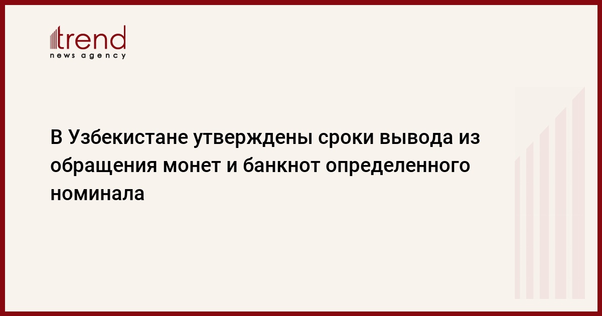 БАКУ /Trend/ - В Узбекистане утверждено положение о порядке отзыва из обращения монет и банкнот номиналом 25 сумов и ниже, сообщает в четверг Trend со ссылкой на узбекские СМИ.