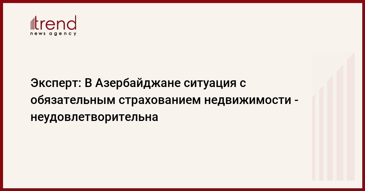 БАКУ /Trend/ - В Азербайджане ситуация в сфере обязательного страхования недвижимости является неудовлетворительной. Об этом сказал Trend эксперт в области страхования, председатель комитета страховых посредников Ассоциации страховщиков Азербайджана Хаял Мамедханлы.