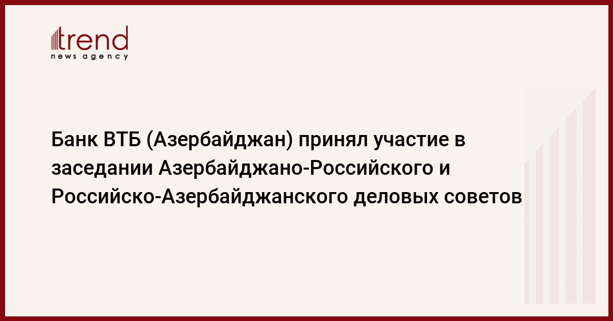 Председатель правления банка ВТБ (Азербайджан) Евгений Кирин принял участие в расширенном заседании Азербайджано-Российского и Российско-Азербайджанского деловых советов. Данная встреча состоялась в рамках 10-го Российско-Азербайджанского межрегионального форума, проходившего в Москве под председательством Первого вице-президента Азербайджана Мехрибан Алиевой и председателя Совета Федерации Федерального собрания РФ Валентины Матвиенко.