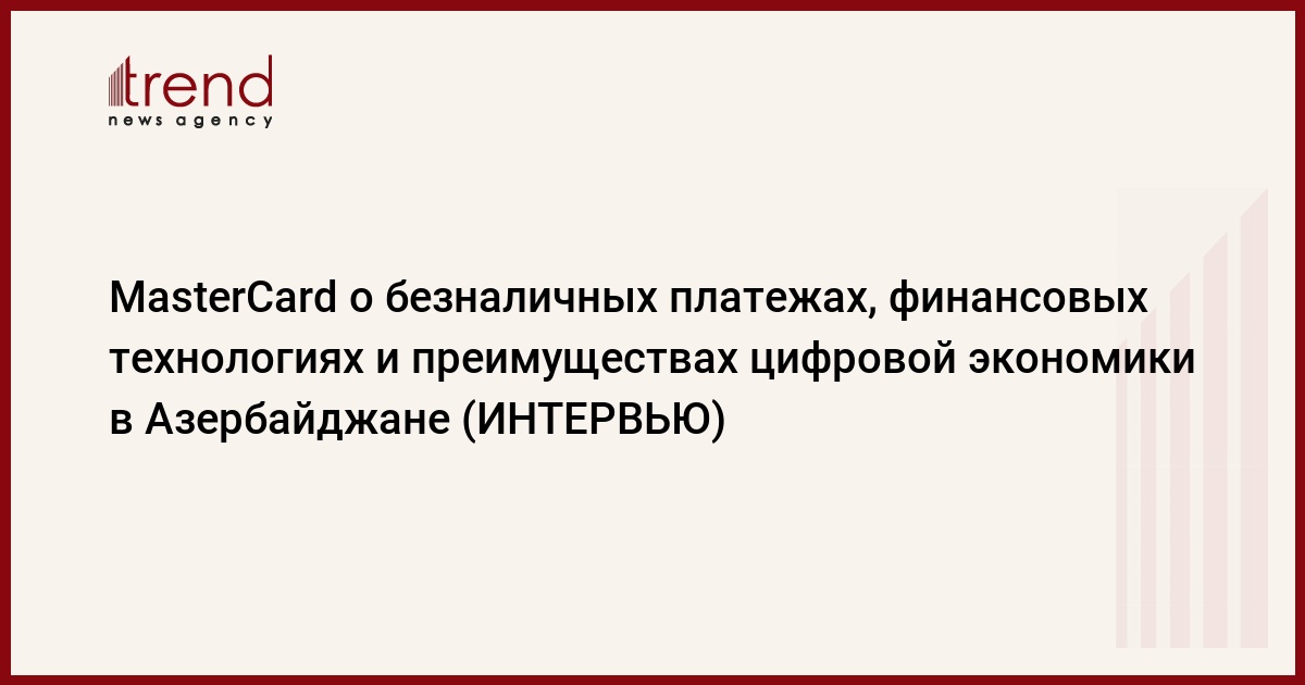 БАКУ /Trend/ - Одной и самых растущих тенденций в Азербайджане на сегодняшний день является цифровизация финансового сектора страны, и об одном из направлений в этой области – безналичных платежах, их преимуществах и будущем положении рассказал в интервью Trend глава представительства MasterCard в Азербайджане Эрдем Чакар.