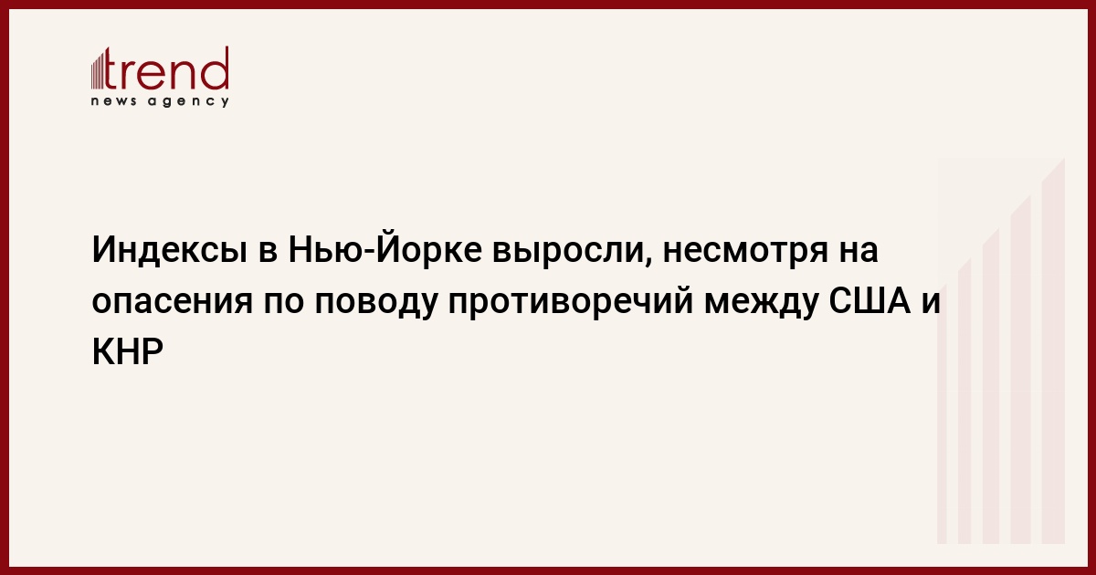 Торги на Нью-Йоркской фондовой бирже завершились ростом ключевых индексов, несмотря на опасения участников рынка по поводу возможности усиления торговых противоречий между США и Китаем. Соответствующие данные, как передает Trend со ссылкой на ТАСС, приводятся в понедельник на сайте этой торговой площадки.