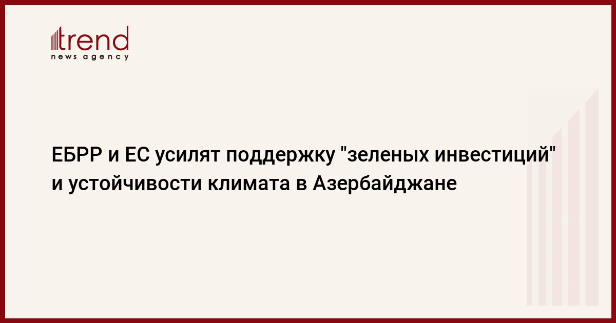 БАКУ /Trend/ - Европейский банк реконструкции и развития (ЕБРР) и Европейский союз (ЕС) усиливают поддержку "зеленых инвестиций" и устойчивости климата в Азербайджане, сообщает во вторник Trend со ссылкой на ЕБРР.