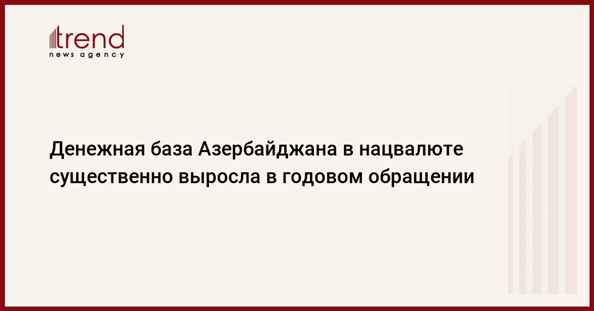 БАКУ /Trend/ - Денежная база Азербайджана в манатах на конец сентября текущего года составила 12,2 миллиарда манатов, сообщает Trend со ссылкой на данные Центрального банка Азербайджана (ЦБА).