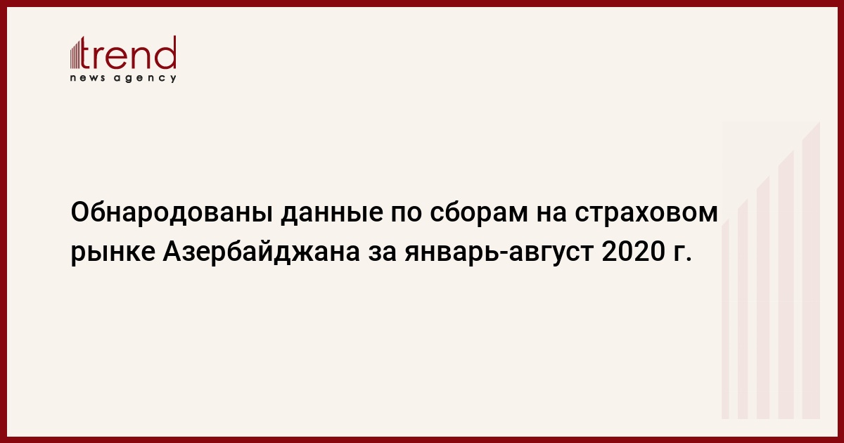 БАКУ /Trend/ - Обнародованы данные по сборам на страховом рынке Азербайджана за январь - август 2020 года, сообщает в пятницу Trend со ссылкой на опубликованный отчет Центрального банка Азербайджана.