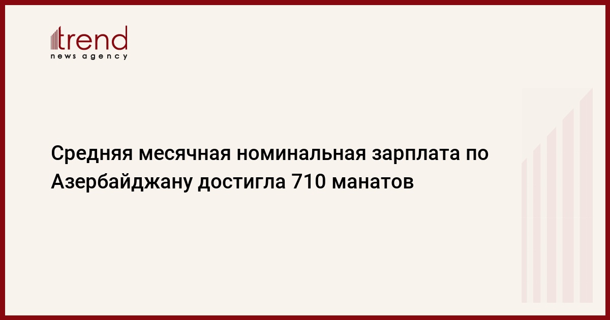 БАКУ/Trend/ - В результате повышения заработной платы и ускорения развития частного сектора, среднемесячная номинальная заработная плата по стране в январе-августе 2020 года достигла 710,2 манатов.