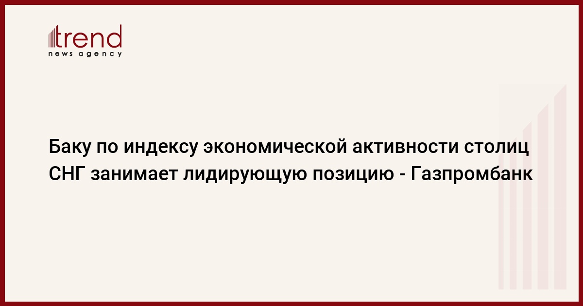 По её заявлениям, в рейтинге индекса экономической активности столиц СНГ на Баку приходятся 72 процента, по этому показателю столица Азербайджана опережает Москву, Бишкек, а также Ереван, у которого индекс экономической активности самый наименьший и равен 65 процентам.
