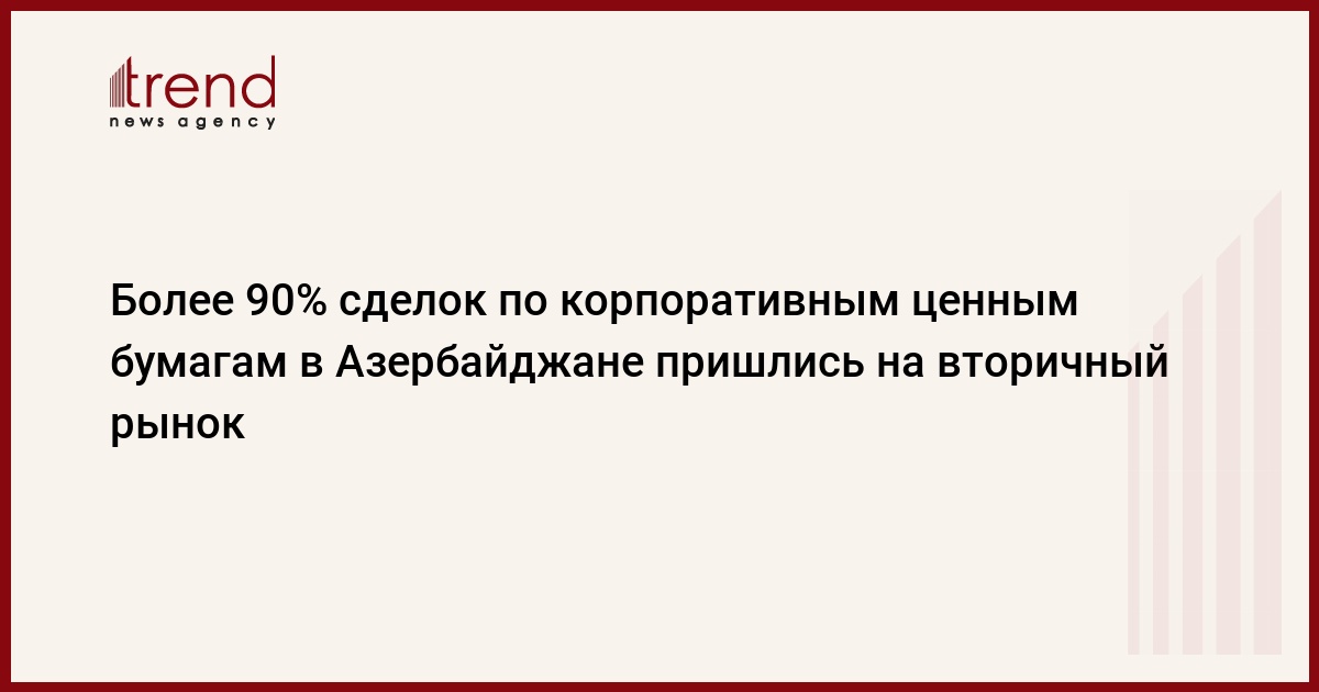 Согласно информации, всего за данный период были осуществлены 2504 сделки. Из них 2347 операций (93,7 процента) на сумму более 1,5 миллиарда манатов пришлись на вторичный рынок. В частности, были проданы 1927 акций на сумму 29,8 миллиона манатов и 420 облигаций на сумму 1,47 миллиарда манатов. Также 90 сделок или 3,8 процента от всех операций на вторичном рынке пришлись на продажу ипотечных облигаций в размере 1,45 миллиарда манатов.