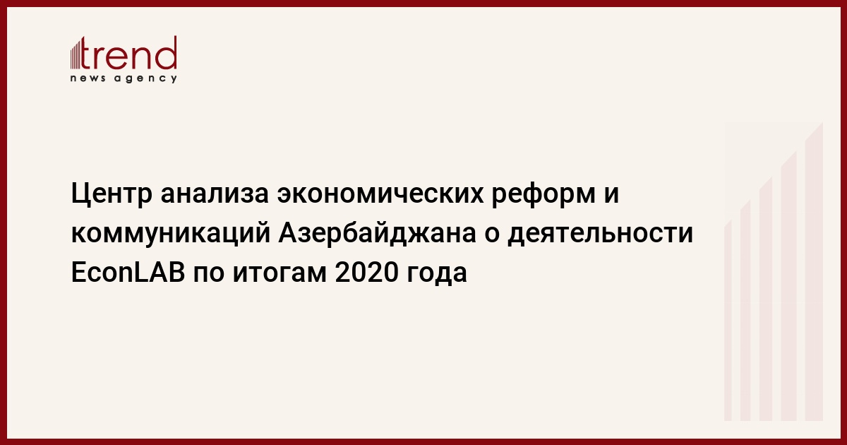 БАКУ /Trend/ - В течение 2020 года при поддержке Азиатского банка развития (АБР), SECO, Всемирного банка и Международного валютного фонда (МВФ) в Центре анализа экономических реформ и коммуникаций Азербайджана была создана лаборатория экономического анализа EconLAB.