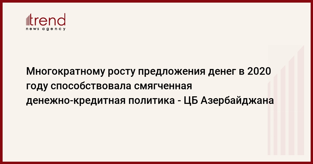 По заявлению Центробанка, денежная масса в манатах с начала 2020 года выросла на 7,1 процентов. Предоставление Центробанком необходимой поддержки ликвидности в условиях коронавирусной пандемии также повлияло на предложение денег, которое, в целом, увеличилось на 52 процента с начала 2018 года, когда денежно-кредитная политика в Азербайджане начала смягчаться.