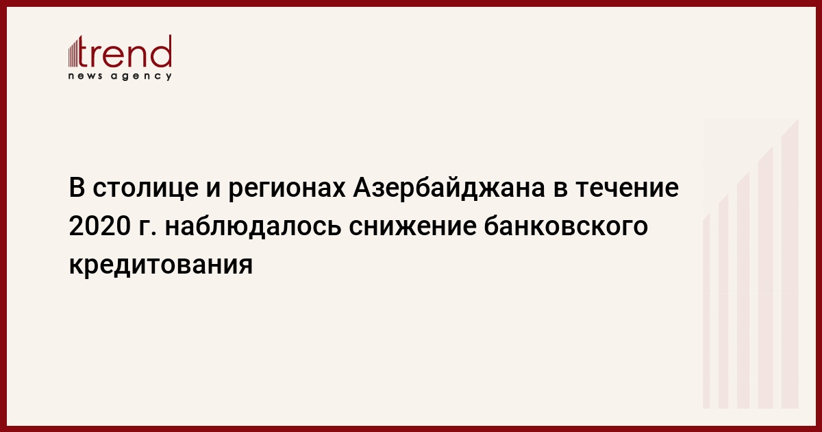 Согласно данным Центробанка, на начало января 2021 года в Баку выданы кредиты на 11,33 миллиардов манатов, что в четыре раза больше, чем в регионах. При этом в столице на кредиты в национальной валюте пришлось 7,19 миллиардов манатов (63,4 процента от общего объема кредитования в Баку).