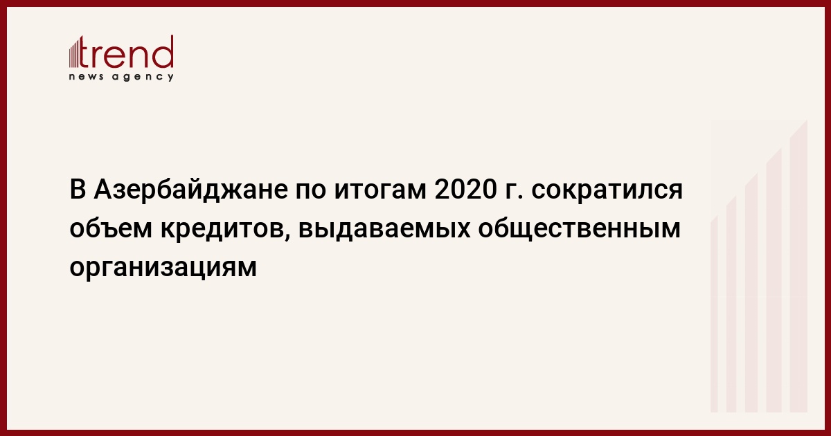 БАКУ /Trend/ - Объём кредитов, выданных общественным организациям по итогам 2020 года, составил 24 миллиона манатов, сообщает в понедельник Trend со ссылкой на статистические данные Центрального банка Азербайджана (ЦБА).