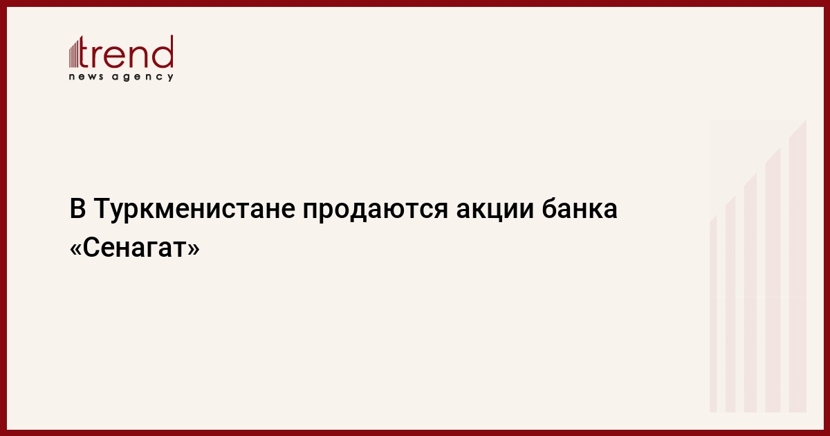 БАКУ /Trend/ - В Туркменистане продаются акции коммерческого банка «Сенагат», сообщает Trend в среду со ссылкой на информационный портал «Туркменпортал».