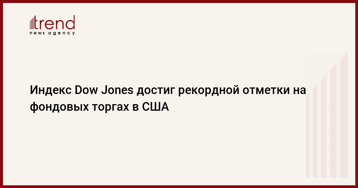 Американский промышленный индекс Dow Jones достиг в среду рекордной отметки к закрытию фондовых торгов в США, передает Trend со ссылкой на ТАСС.