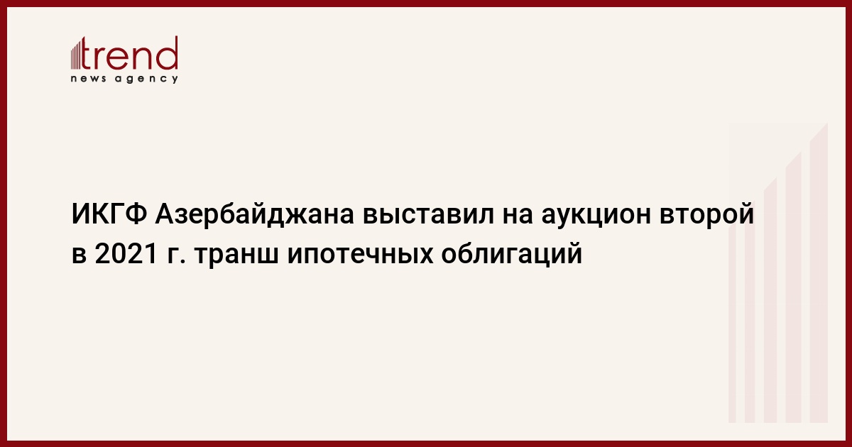 БАКУ /Trend/ - На Бакинской фондовой бирже (БФБ) 10 июня 2021 года состоялся аукцион по размещению второго транша ипотечных облигаций Ипотечного и кредитно-гарантийного фонда (ИКГФ) Азербайджана на сумму 50 миллионов манатов со сроком обращения 9720 дней, сообщает в четверг Trend со ссылкой на биржу.