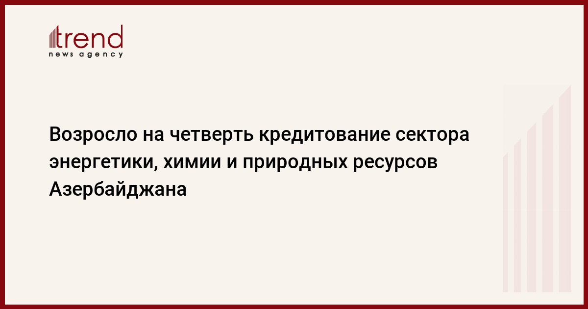 БАКУ /Trend/ - Объем кредитования сектора энергетики, химии и природных ресурсов в Азербайджане к началу мая 2021 года составил 778,4 миллиона манатов, что на 24,8 процента больше по сравнению с аналогичным периодом 2020 года.