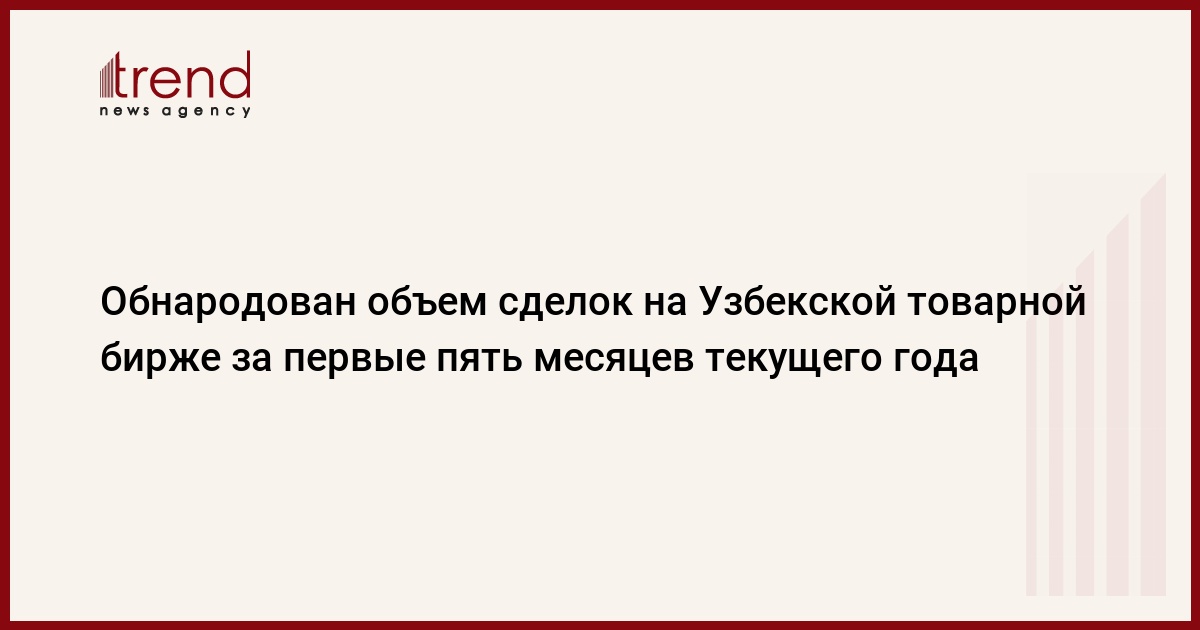 Объем сделок на Узбекской республиканской товарно-сырьевой бирже за первые пять месяцев текущего года вырос на 56%, передает Trend со ссылкой на Центр экономических исследований и реформ (ЦЕРР).