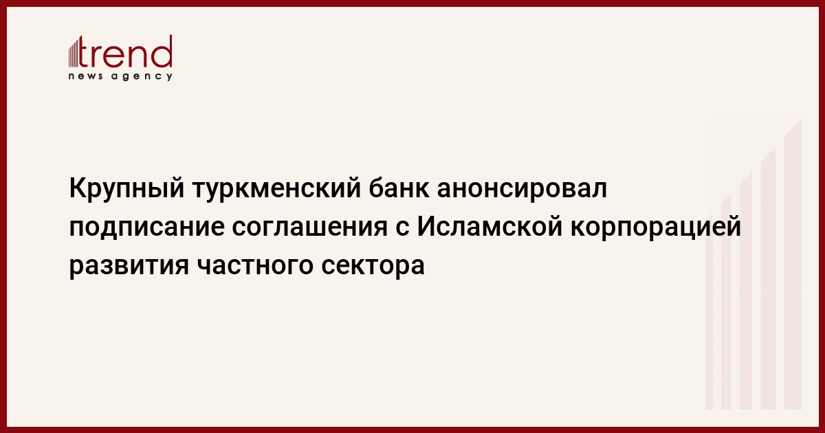 БАКУ /Trend/ - Государственный банк внешнеэкономической деятельности Туркменистана заключит с Исламской корпорацией развития частного сектора дополнительное к трехлетнему статусу SWAP финансовое соглашение.