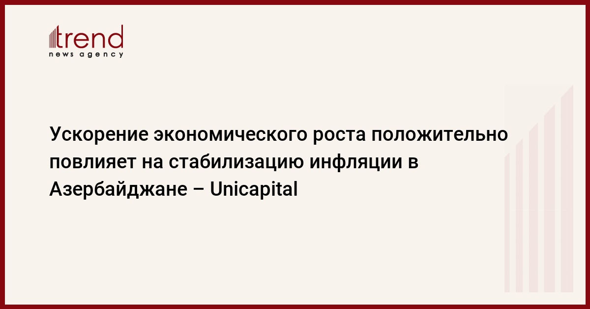 БАКУ /Trend/ - Восстановление и ускорение экономического роста в Азербайджане может оказать положительное влияние на стабилизацию инфляции в ближайшие месяцы.