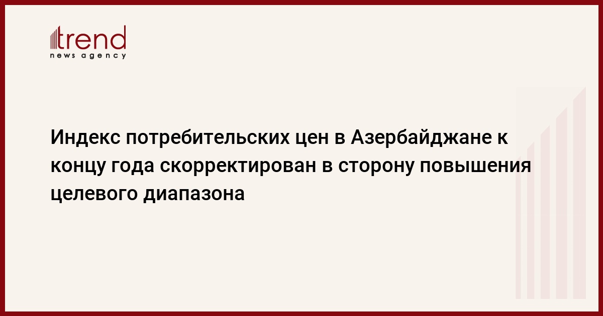 БАКУ /Trend/ - Индекс потребительских цен в Азербайджане к концу 2021 года скорректирован в сторону повышения целевого диапазона с учетом влияния расходных факторов.
