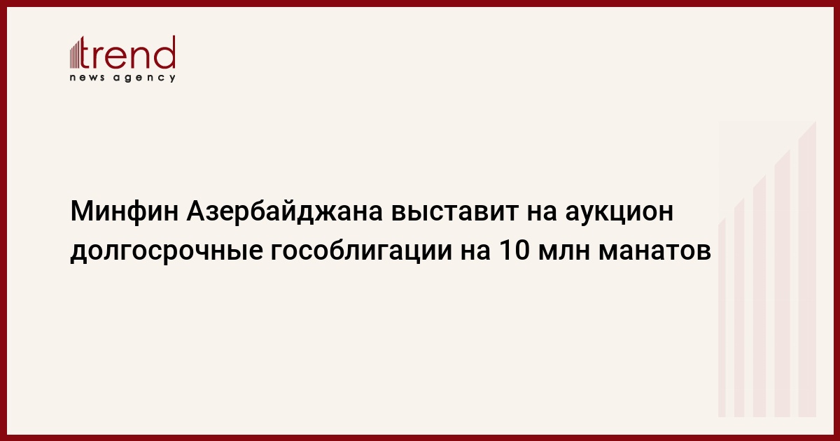 БАКУ /Trend/ - На Бакинской фондовой бирже (БФБ) 21 сентября 2021 года пройдет аукцион по размещению государственных долгосрочных облигаций министерства финансов Азербайджана на общую сумму 10 миллионов манатов.