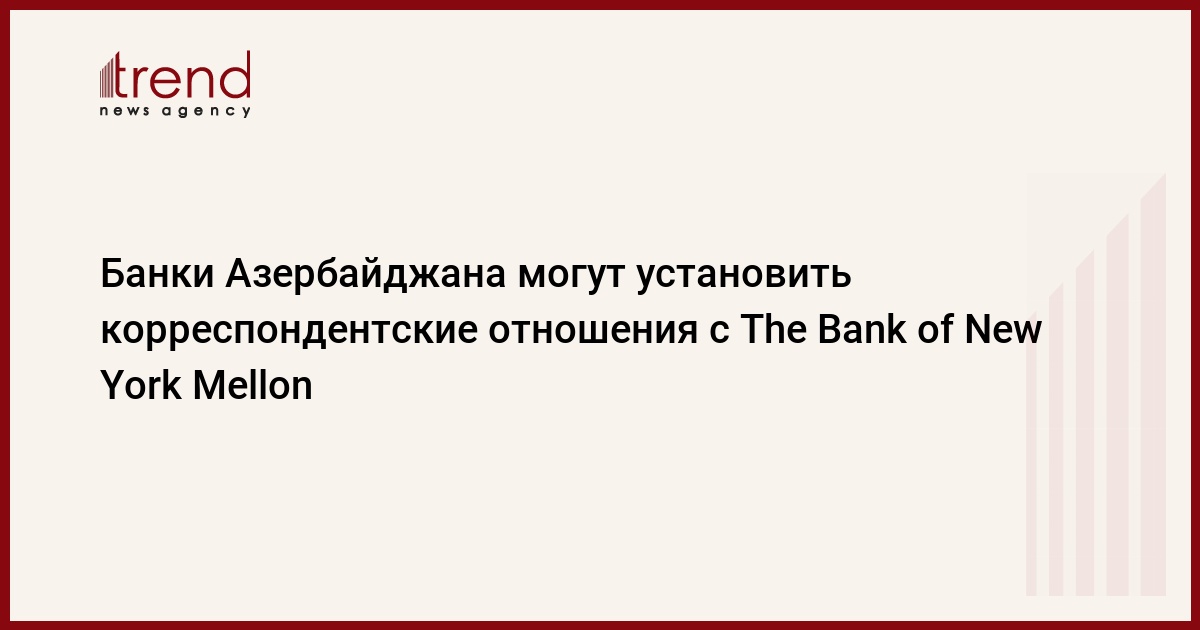 БАКУ /Trend/ - Банки Азербайджана могут установить корреспондентские отношения с The Bank of New York Mellon, сообщает Trend во вторник со ссылкой на Ассоциацию банков Азербайджана (АБА).