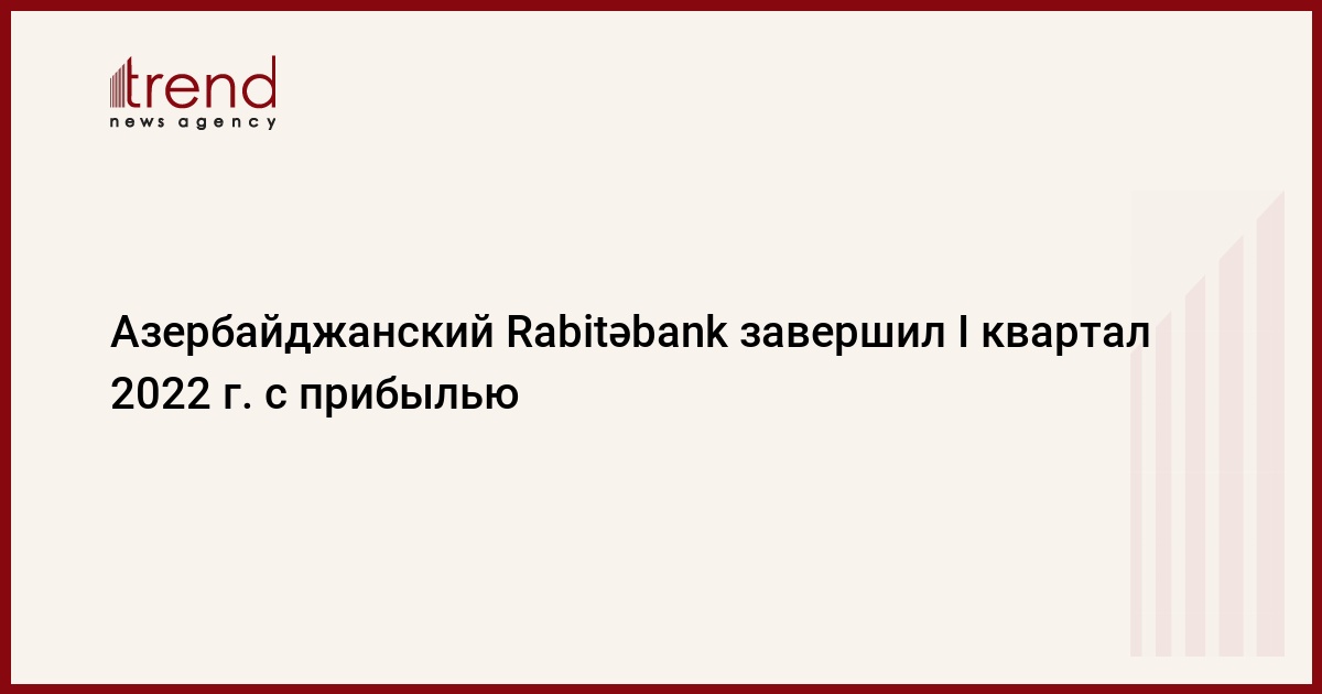 БАКУ /Trend/ - Азербайджанский Rabitəbank завершил первый квартал 2022 года с чистой прибылью в размере 5,073 миллиона манатов, в то время как этот показатель в аналогичном периоде прошлого года составил 3,495 миллиона манатов, сообщает в понедельник Trend со ссылкой на финансовый отчет банка.