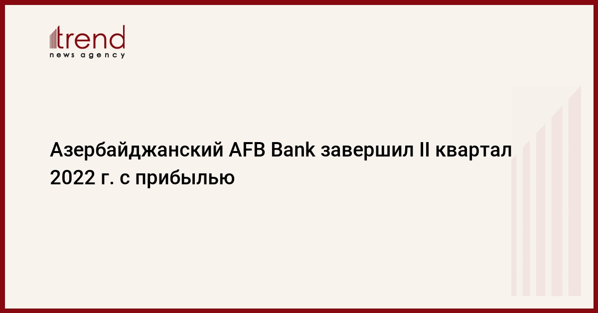 БАКУ /Trend/ - Азербайджанский AFB Bank завершил второй квартал 2022 года с чистой прибылью в размере 8,673 миллиона манатов, сообщает в четверг Trend со ссылкой на финансовый отчет банка.