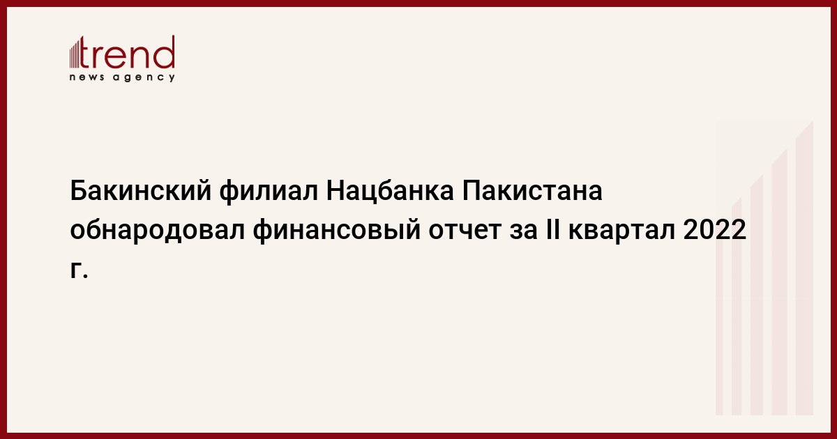 БАКУ /Trend/ - Чистый убыток бакинского филиала Национального банка Пакистана по итогам второго квартала 2022 года составил 271,23 тысячи манатов, сообщает в понедельник Trend со ссылкой на финансовый отчет банка.
