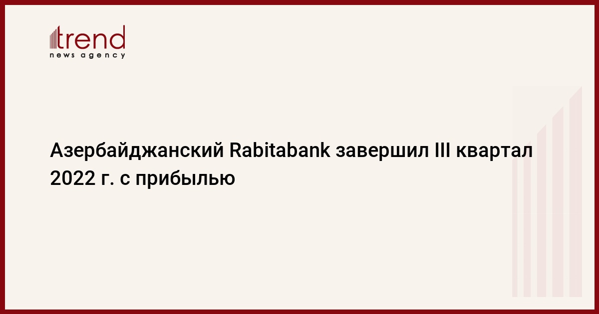 БАКУ /Trend/ - Азербайджанский Rabitabank завершил третий квартал 2022 года с чистой прибылью в размере 12,676 миллиона манатов (рост за год на 91,32 процента), сообщает в пятницу Trend со ссылкой на финансовый отчет банка.
