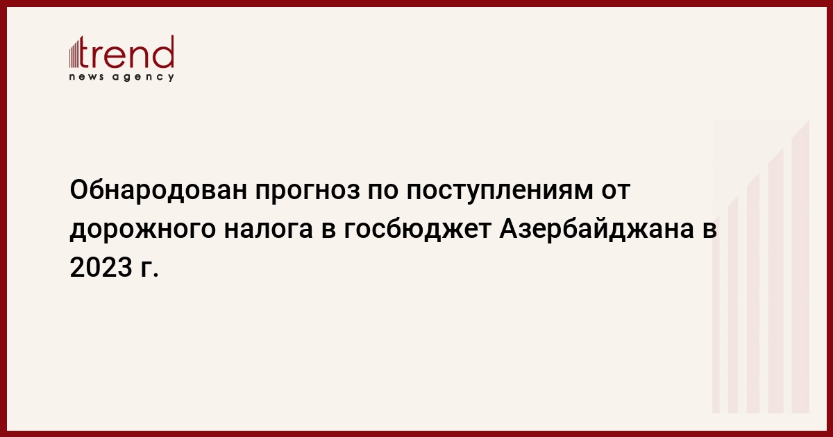 БАКУ /Trend/ - В 2023 году поступления в государственный бюджет Азербайджана по дорожному налогу прогнозируются в размере 135,9 миллиона манатов.