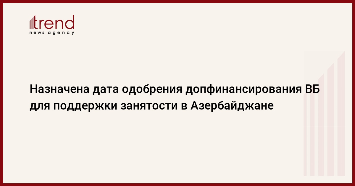 БАКУ /Trend/ - Всемирный банк (ВБ) перенес на 29 июля дату утверждения на Совете директоров дополнительного финансирования для проекта поддержки занятости в Азербайджане, сообщает в среду Trend.