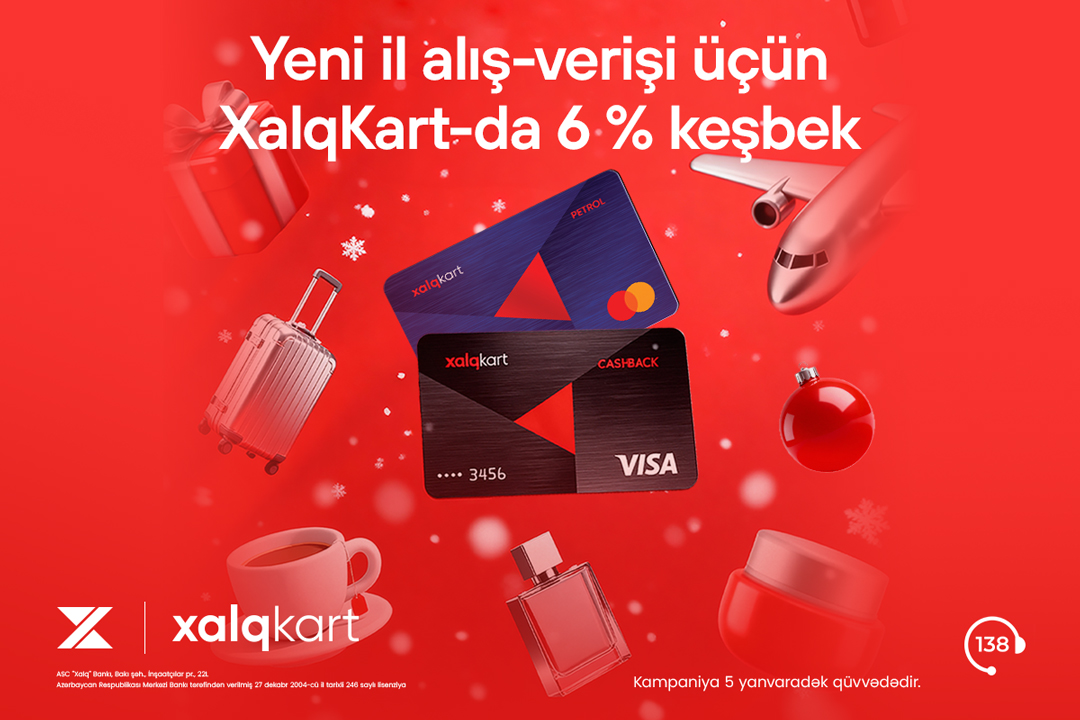 В период кампании клиенты получат 6% кешбэк/петрол по операциям, с XalqKart в кафе и ресторанах, кинотеатрах и при покупке прочих билетов, а также за услуги туризма и отдыха, в кондитерских, парфюмерных и подарочных магазинах. Подробно об условиях кампании: https://www.xalqbank.az/ru/castnim-licam/kampanii/noviy-qod-s-kesbekom-po-xalqkart?include=menu