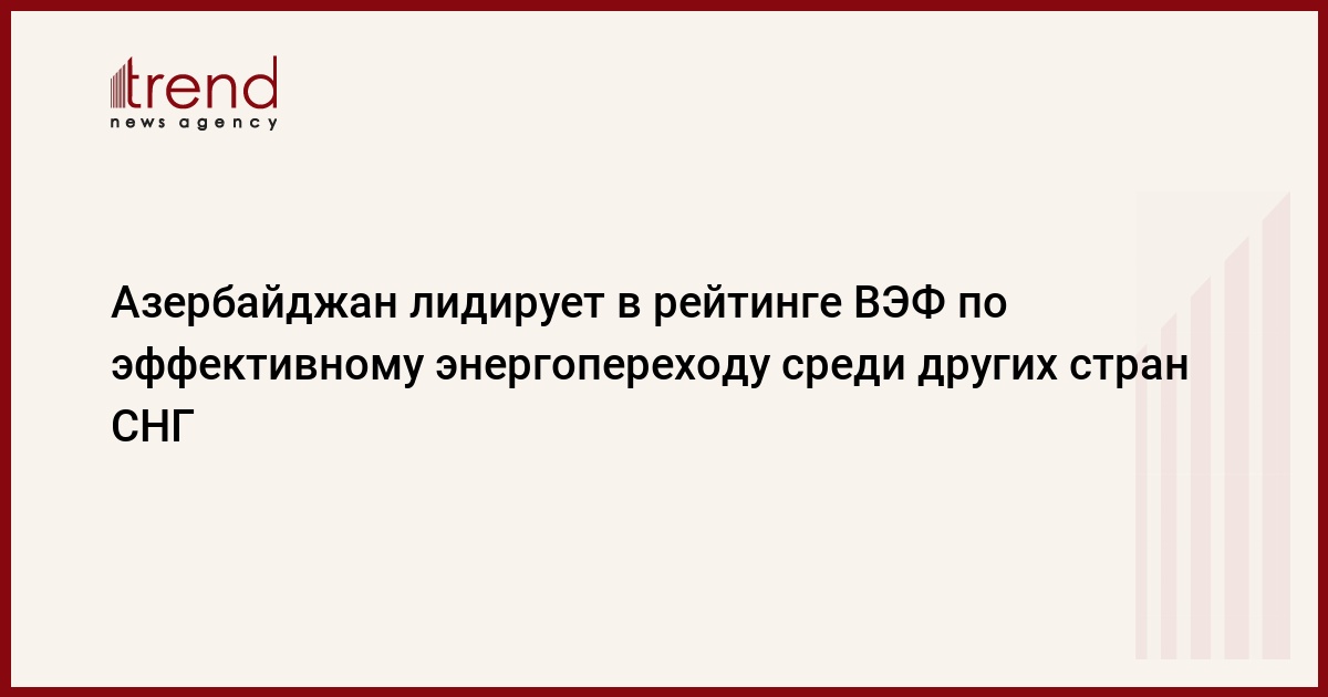 Как следует из рейтинга ВЭФ в отношении 120 стран мира, подготовленного с упором на три составляющие - энергетическую безопасность, устойчивое развитие и улучшение экологических условий, Азербайджан в 2023 году занял 32-е место с фиксацией значительного прогресса в период 2022-23 годов.