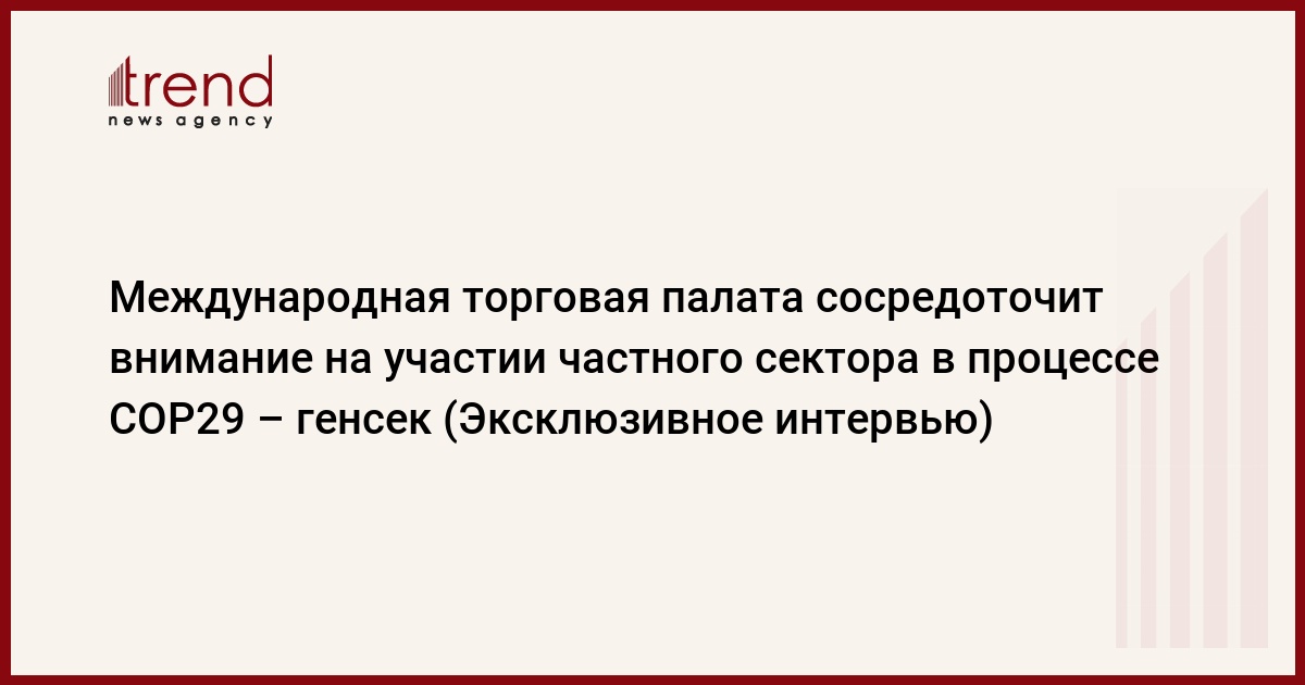 БАКУ /Trend/ - Международная торговая палата (ICC) сосредоточит внимание на вовлечении частного сектора в процесс COP29, сказал в эксклюзивном интервью Trend генеральный секретарь ICC Джон Дентон.