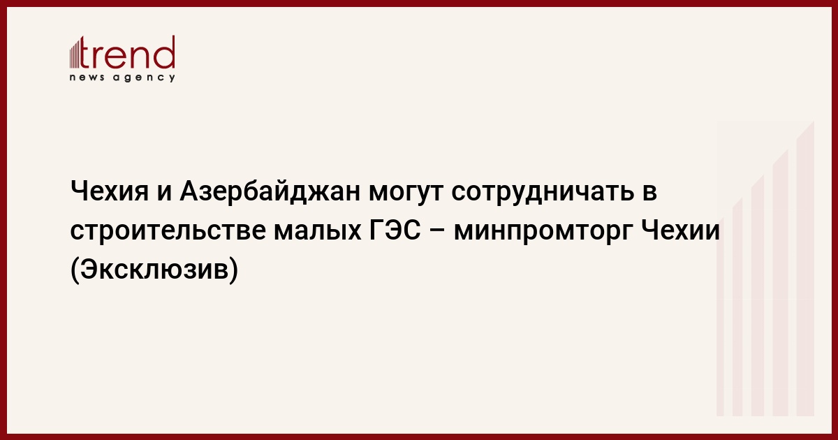 БАКУ /Trend/ - Чехия и Азербайджан могут сотрудничать в строительстве малых гидроэлектростанций.