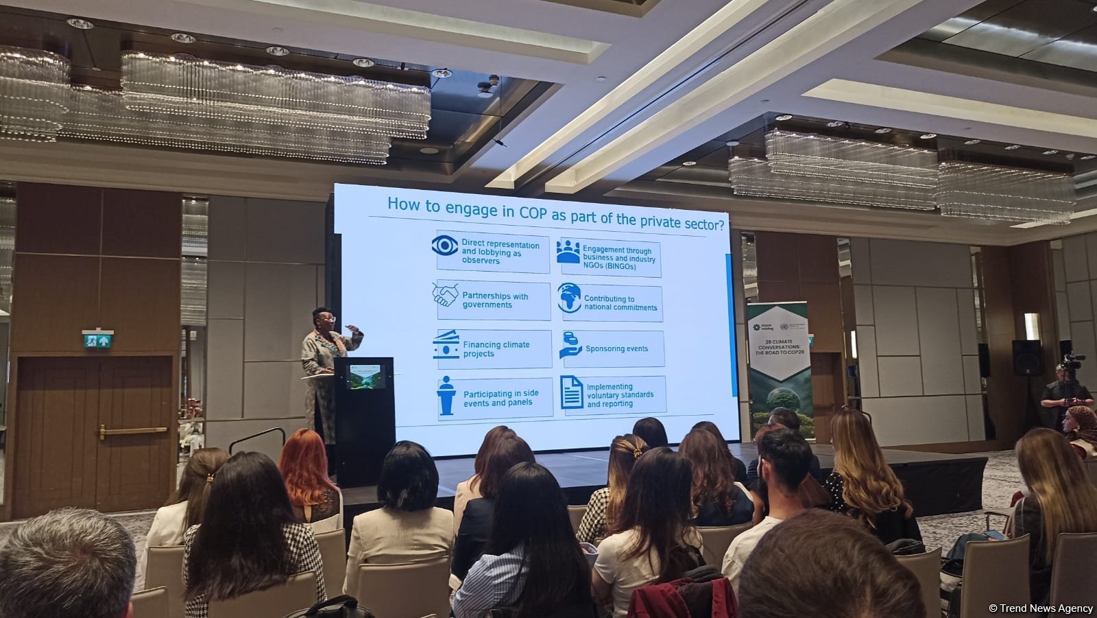 По ее словам, для частного сектора есть следующие возможности участия в предстоящей COP29: