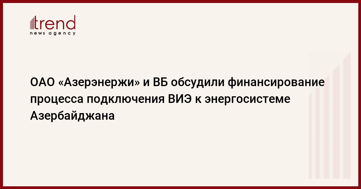 БАКУ /Trend/ - Вопросы финансирования процесса интеграции объектов возобновляемых источников энергии (ВИЭ) в энергосистему Азербайджана обсуждены в четверг в онлайн-формате руководством ОАО «Азерэнержи и экспертами Всемирного банка (ВБ).