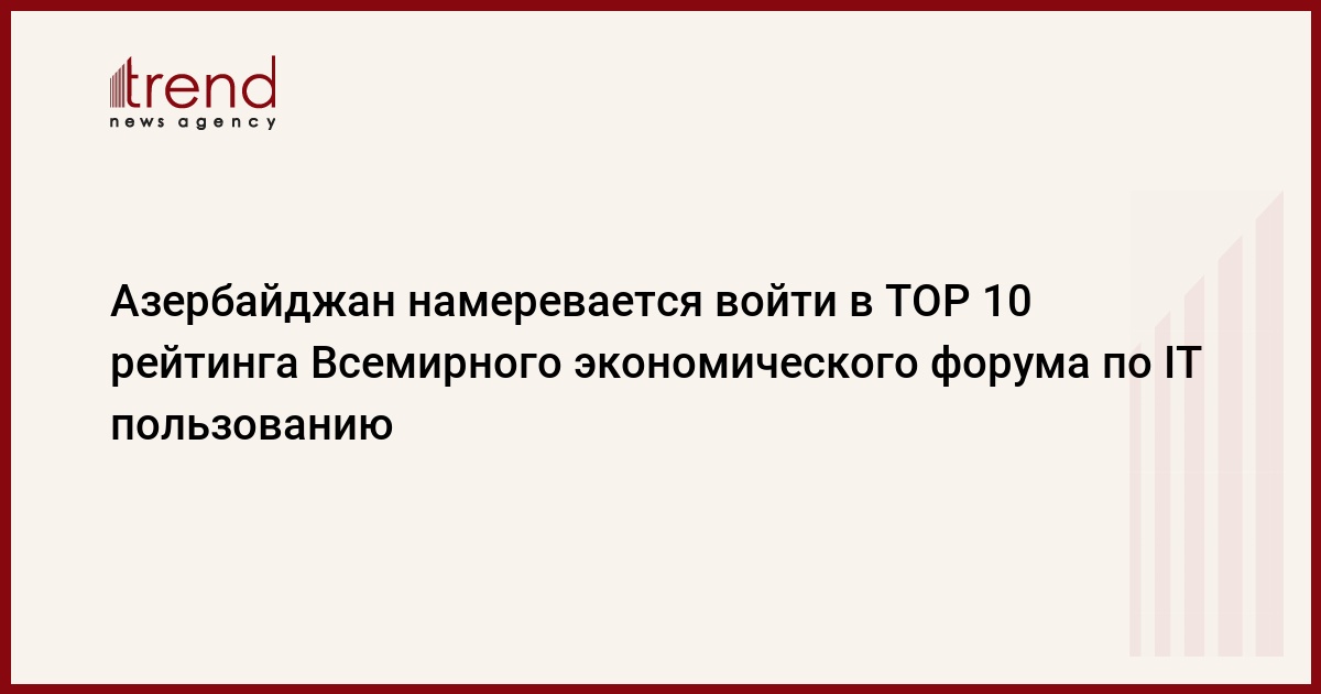 Азербайджан, Баку, /корр. Trend С.Бабаева/ Азербайджан намеревается существенно продвинутся в рейтинге Всемирного экономического форума (ВЭФ) по пользованию IT технологий. Об этом сказал глава отдела развития информационного общества Министерства связи и информационных технологий Руфат Гюльмамедов во вторник.