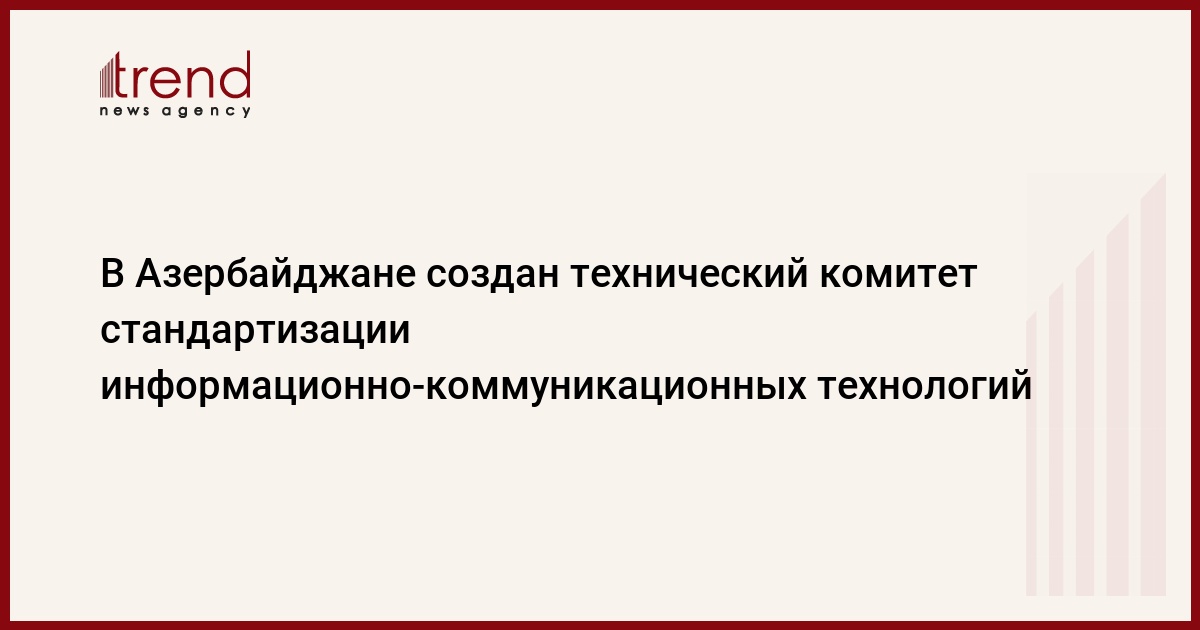 Азербайджан, Баку, 4 августа /корр. Trend С.Бабаева/ На основе совместного документа министерства связи и информационных технологий и Госагентства по стандартизации, метрологии и патентам страны, в Азербайджане создан технический комитет стандартизации информационно-коммуникационных технологий.