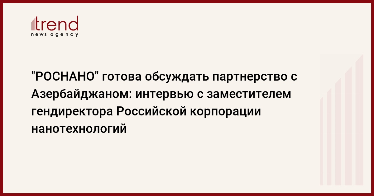 Россия, Москва, 23 декабря /корр. Trend Р.Агаев/ Интервью Trend с членом правления, заместителем генерального директора Российской корпорации "РОСНАНО" Александром Лосюковым.