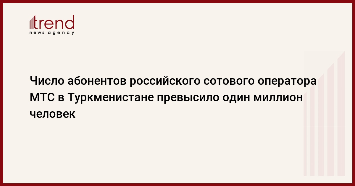 "МТС Туркменистан" - 100-процентная дочерняя компания ОАО "Мобильные ТелеСистемы" сообщает сегодня о том, что число абонентов российской сотового оператора МТС в Туркменистане превысило один миллион.