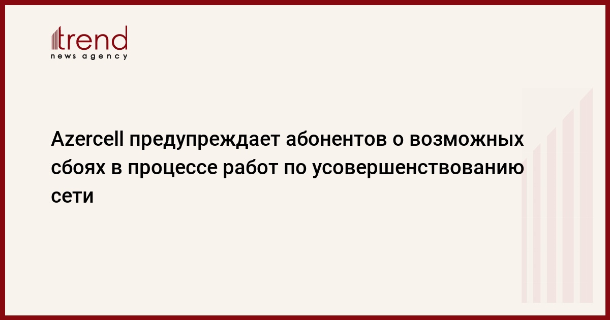 Оператор мобильной связи Азербайджана Azercell Telecom предупреждает своих абонентов о возможных сбоях в осуществлении звонков и прочих услуг c 3 по 5 июня в ночное время.