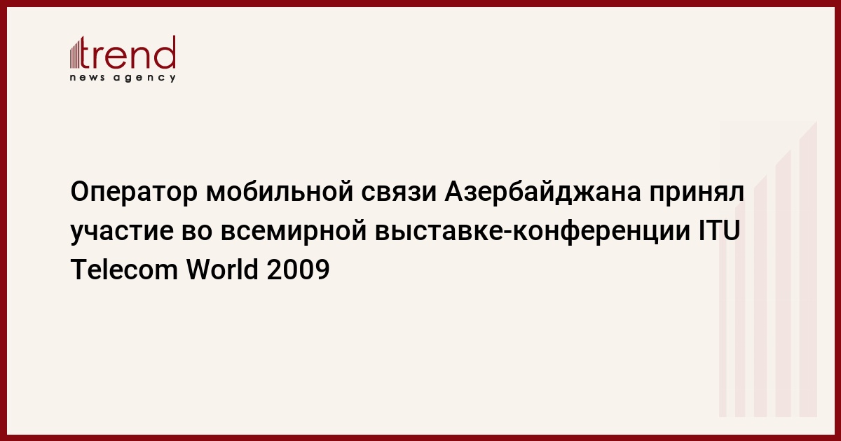 ООО Azercell Telecom принял участие в работе Всемирной конференции и специализированной выставки информационно-коммуникационных технологий ITU Telecom World 2009, прошедшей с пятого по девятое октября в Женеве, говорится в сообщении компании.