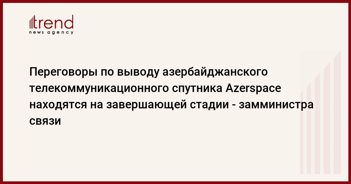 Переговорный процесс по выводу азербайджанского национального телекоммуникационного спутника Azerspace находится на завершающей стадии, сказал в четверг замминистра связи и информационных технологий Азербайджана Ильтимас Мамедов.