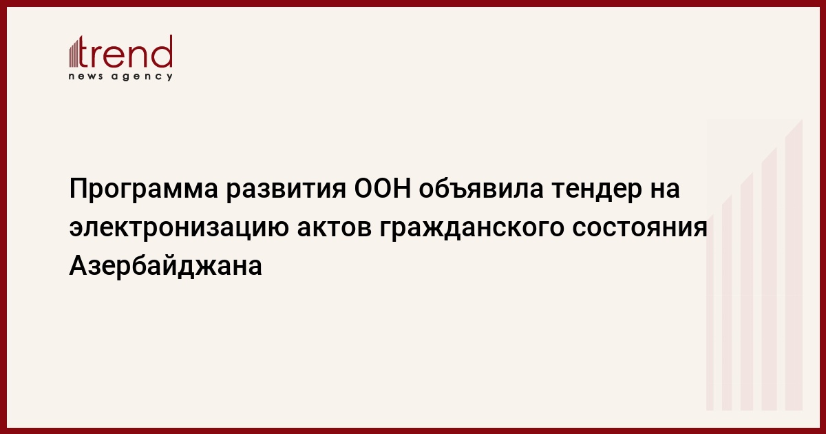 Программа развития ООН в рамках проекта "Формирование и развитие государственного реестра Азербайджана" объявила тендер на перевод актов гражданского состояния в электронный вид.