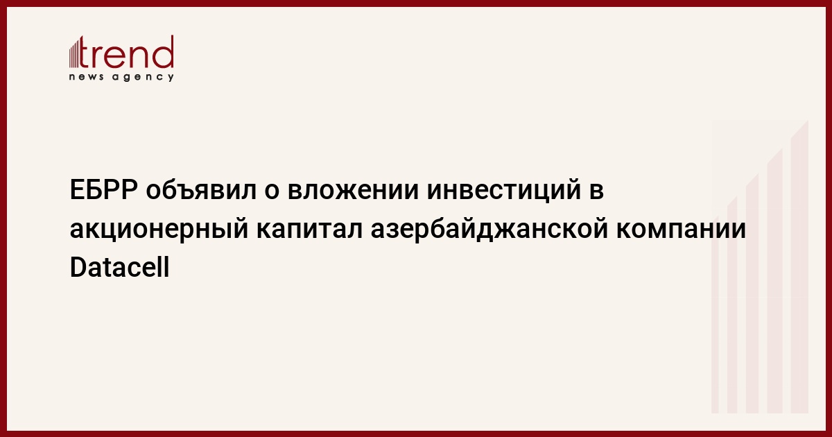 Европейский банк реконструкции и развития (ЕБРР) объявил о вложении инвестиций в размере четырех миллионов долларов в акционерный капитал компании Datacell.